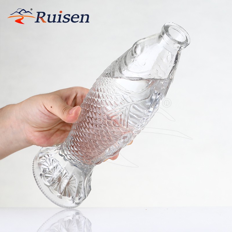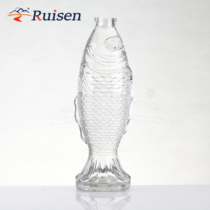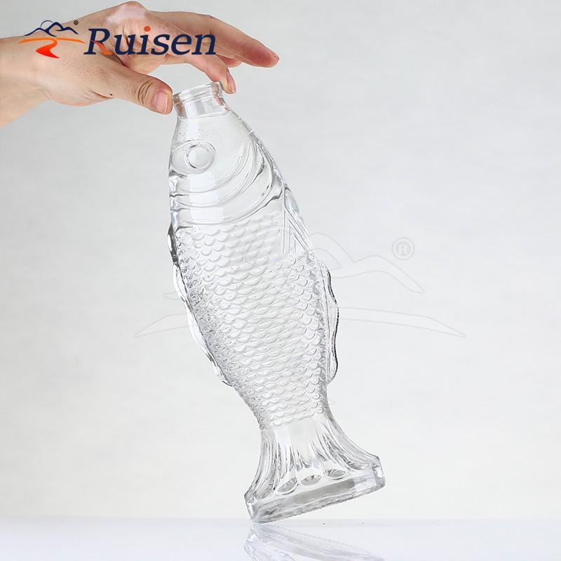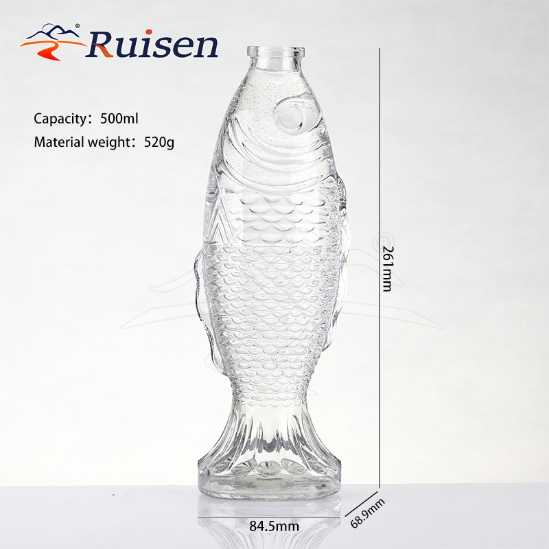500ml Unique Glass Fish Shaped Vessel For High-End Liquor Display And Traditional Culture Inspired Branding