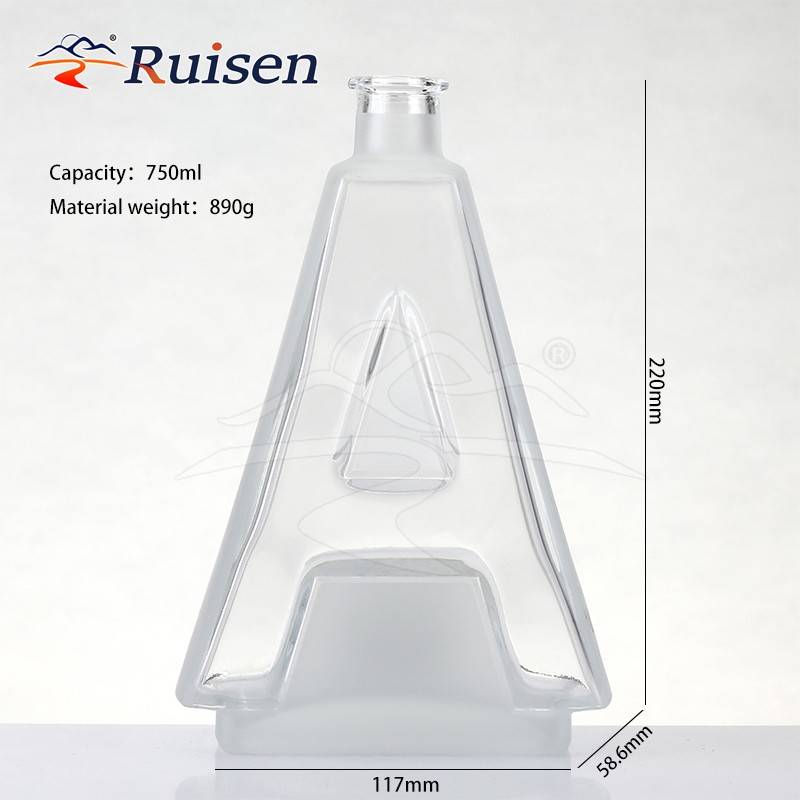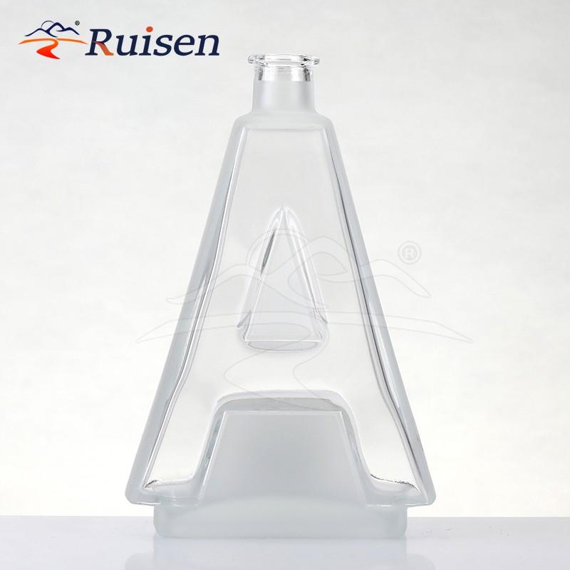 750ml Clear Glass Letter A Shaped Liquor Bottle For Premium Alcohol Storage And Branded Custom Gift Marketing
