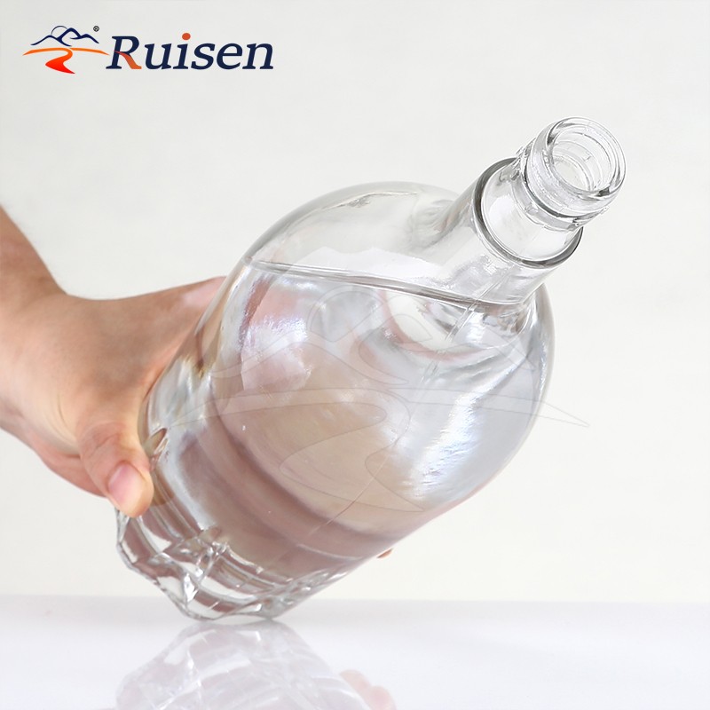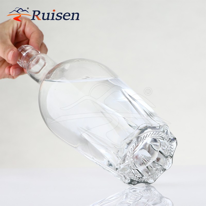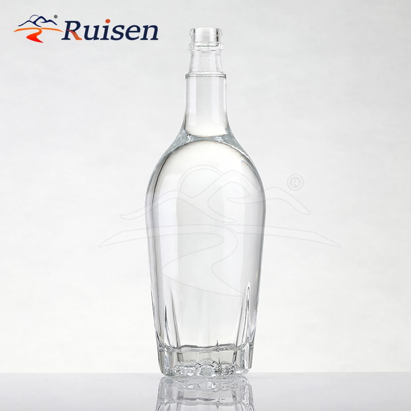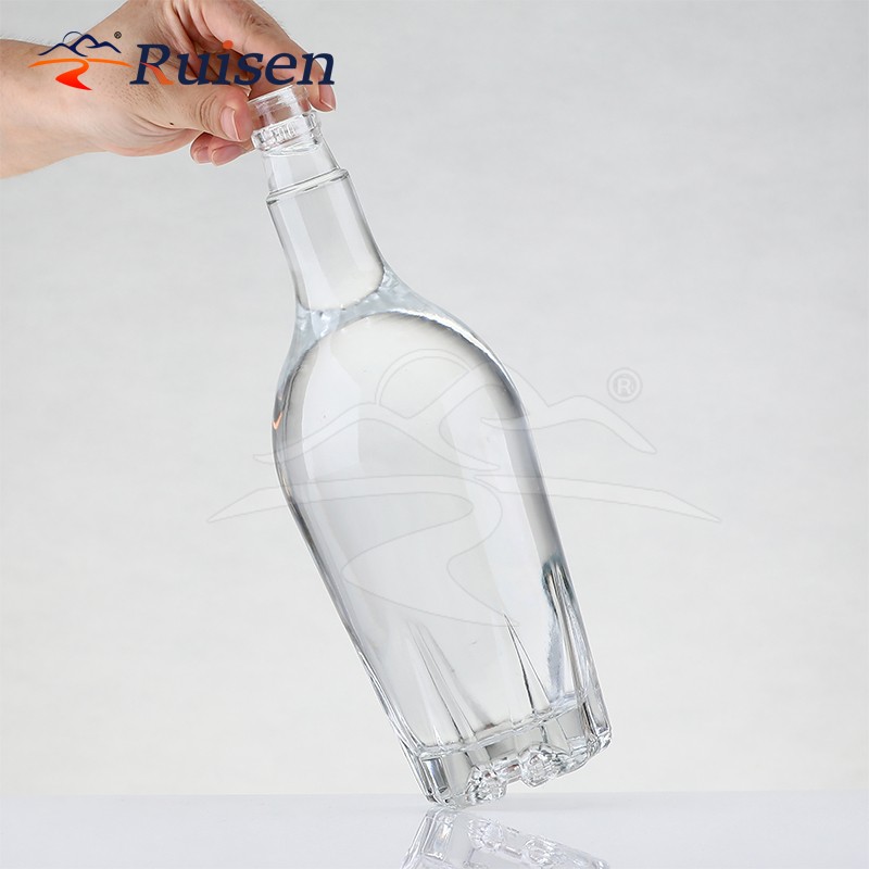 750ml Clear Glass Liquor Bottle Unique Curved Body Design For Premium Alcohol Storage And Luxury Beverage Packaging