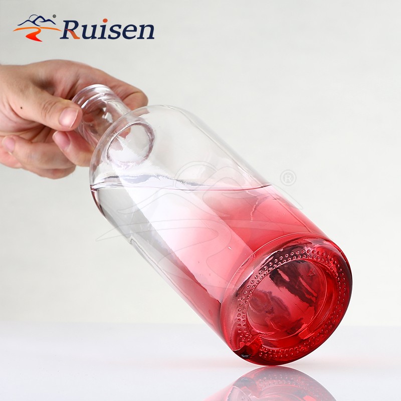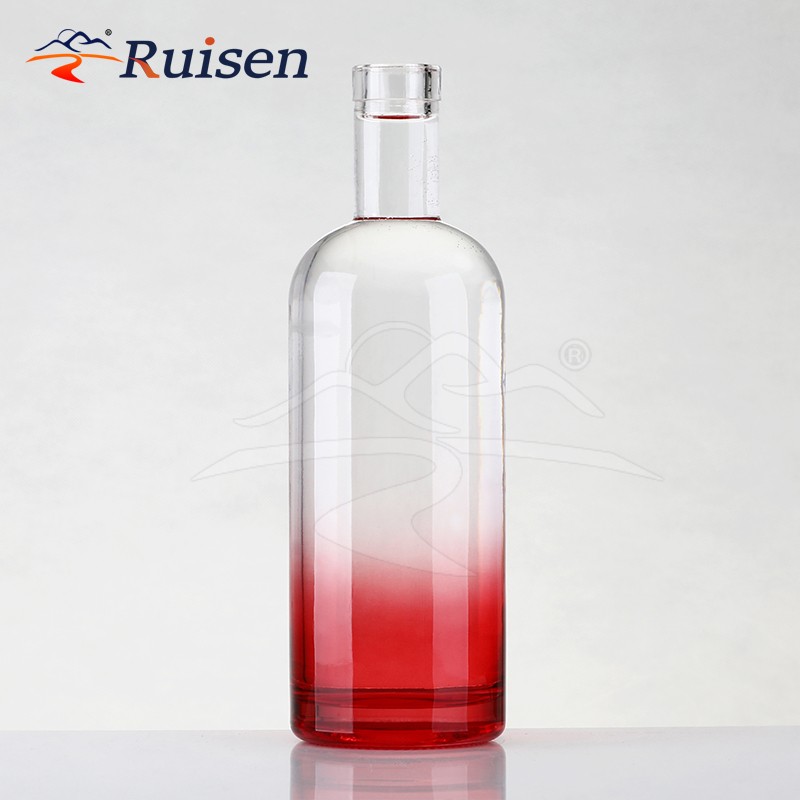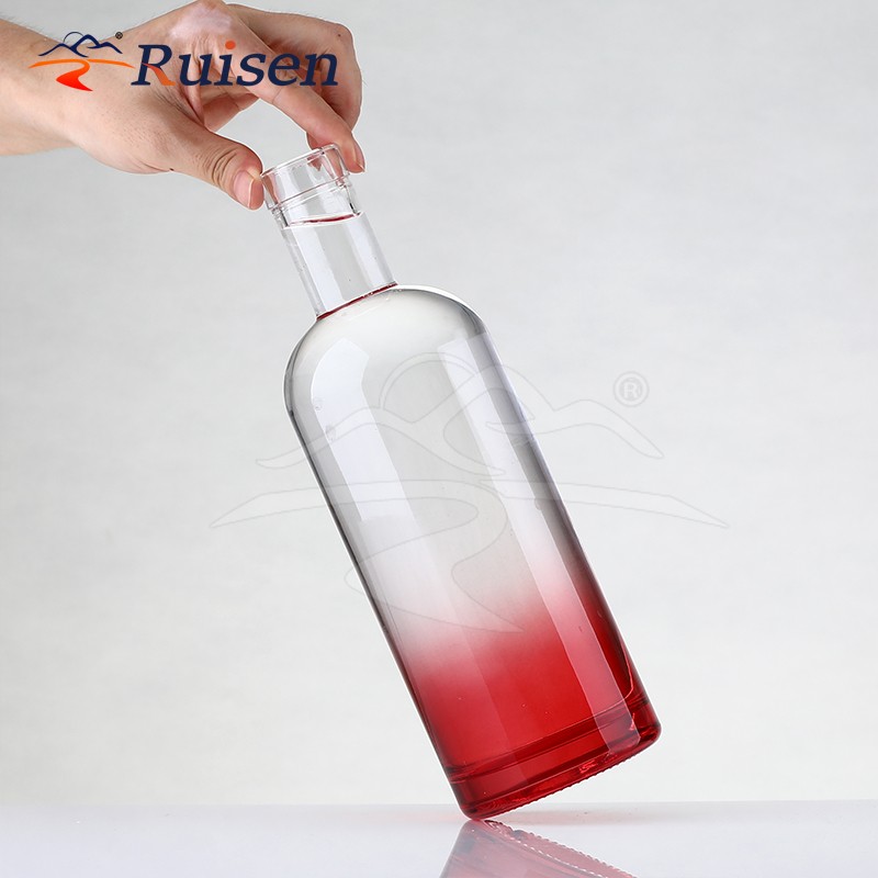 High Quality Custom New Craft 700ml Spirits Whiskey Vodka Brandy Gradient Glass Bottle With Cork Cover