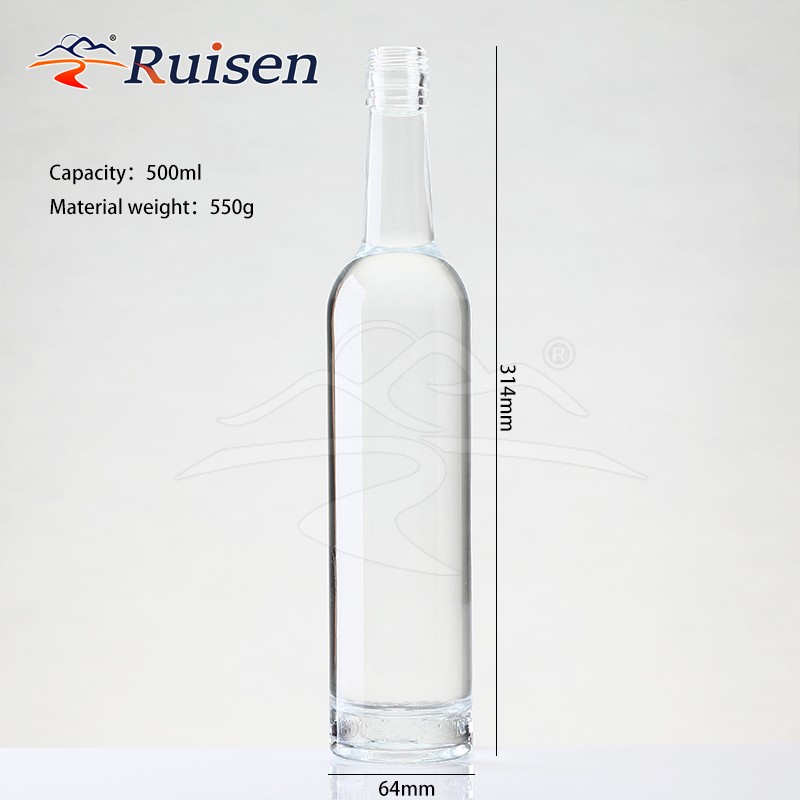 Hot Sale Empty Rectangle 500ml Gin Spirit Glass Bottle Custom Decal 700ml 750ml Whiskey Liquor Glass Bottle with Cork cap