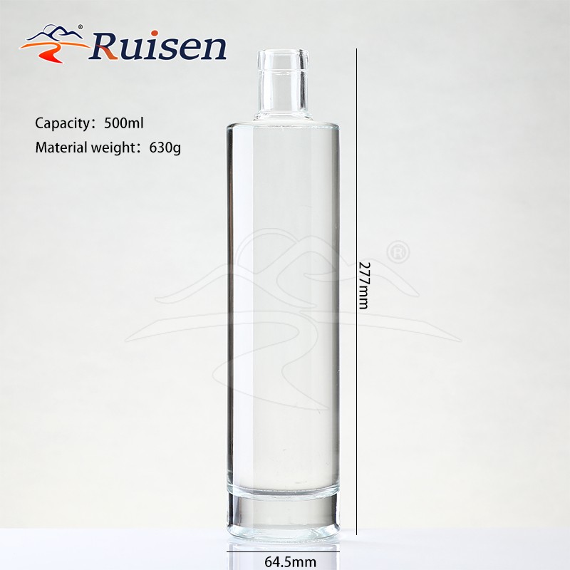 wholesale 200Ml 375Ml 500Ml 750Ml Transparent Round Empty Flint Glass Liquor Wine Whisky Vodka Tequila Bottle With Cork Lid